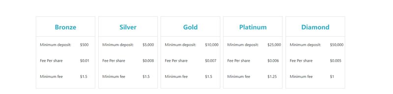 - Bronze Account: Minimum deposit of $500, $0.01 per share, minimum fee of $1.5.