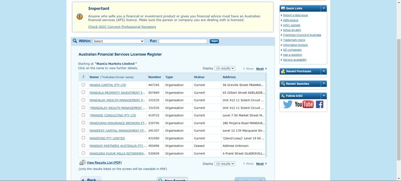 A1: ManCu claims to be registered in Australia, but there is no valid registration found in the relevant Australian regulatory bodies. Furthermore, the platform has not been registered with the mentioned authorities.